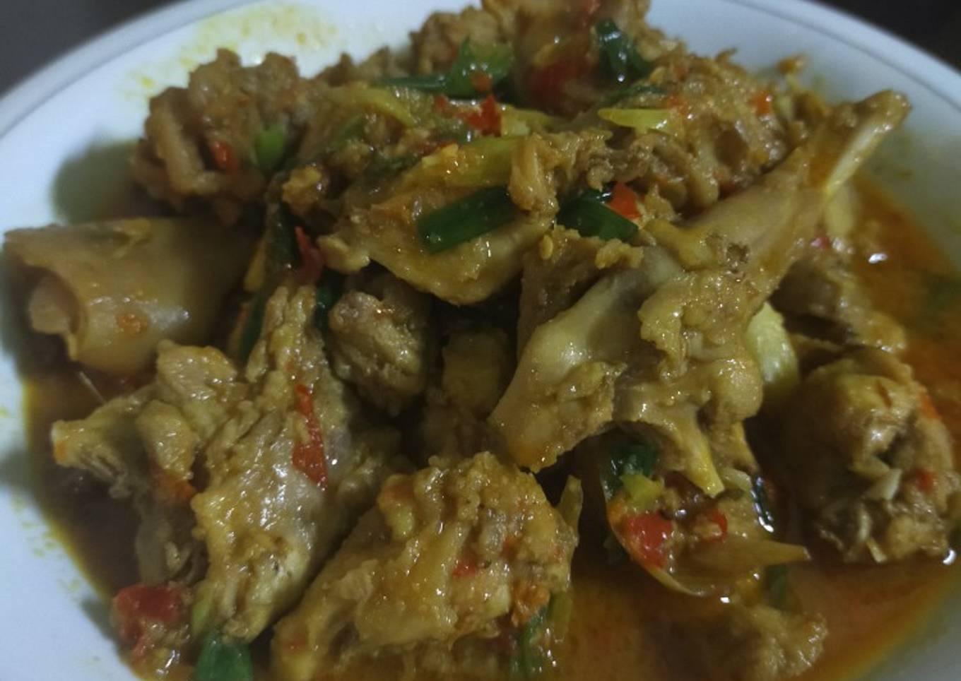 - Haluskan semua bumbu kemudian tumis sampai harum,tambahkan daun bawang dan air