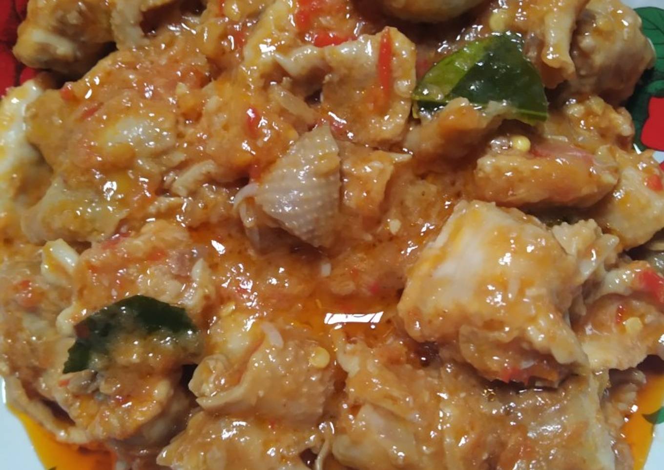 - Masukan kulit ayam, aduk rata. Tambahkan air sesuai selera. masak hingga air menyusut dan matang. Cek rasa. Sajikan.