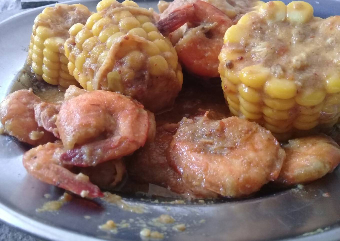 - Setelah jagung matang masukan gula merah, garam dan kaldu bubuk. Masukan udang. Aduk rata. Masak sampai bumbu meresap dan menyusut.