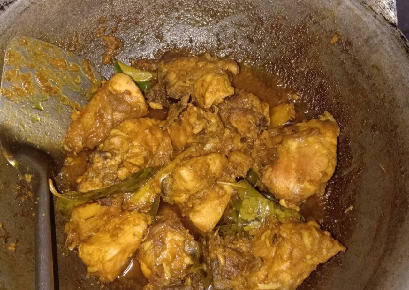 - Masukkan ayam yang sudah digoreng tadi, aduk pelan-pelan supaya mereka bumbunya, tambahkan penyedap rasa. Tunggu sampai bumbu meresap, koreksi rasa, sajikan. 😉
