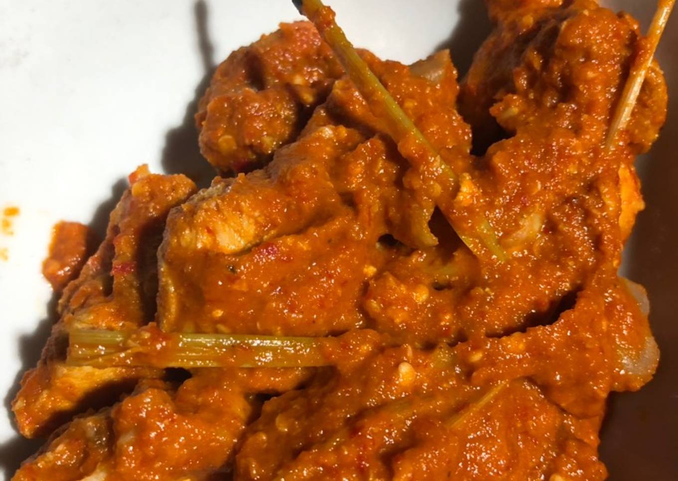 - Masukan air, koreksi rasa hingga sambal mengering dan menyerap ke ayamnya.
