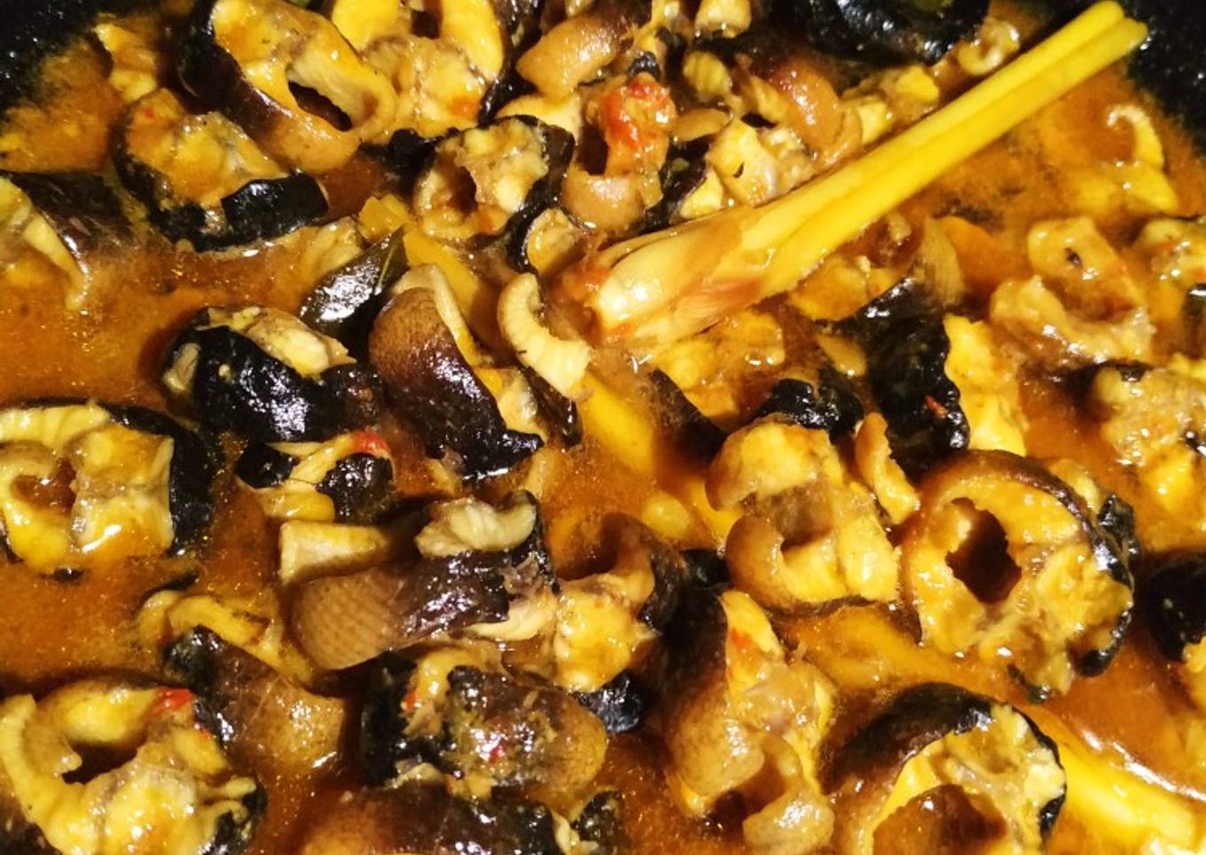 - Masukan belut, aduk rata sampai belut terlihat kaku, kemudian beri air secukupnya, aduk sampe rata.