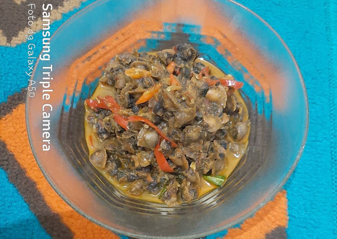 - Tumis bumbu halus, masukkan daun jeruk. Setelah bumbu halus wangi masukkan kerang tambahkan air secukupnya. Tunggu kerang hingga matang.