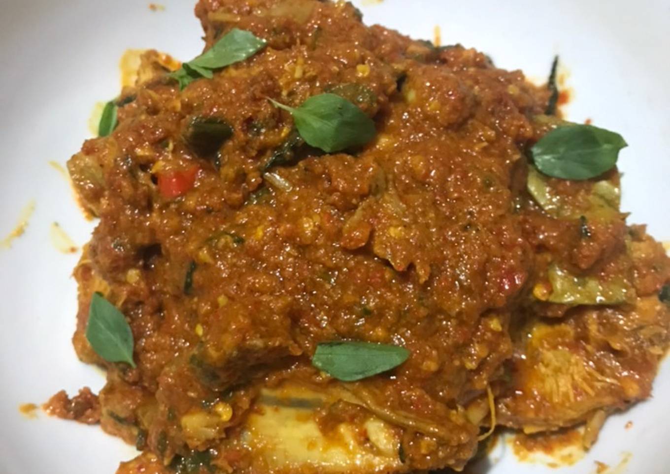 - Setelah matang, matikan api, dan masukkan daun kemangi, aduk lagi hingga daunnya agak layu, sajikan