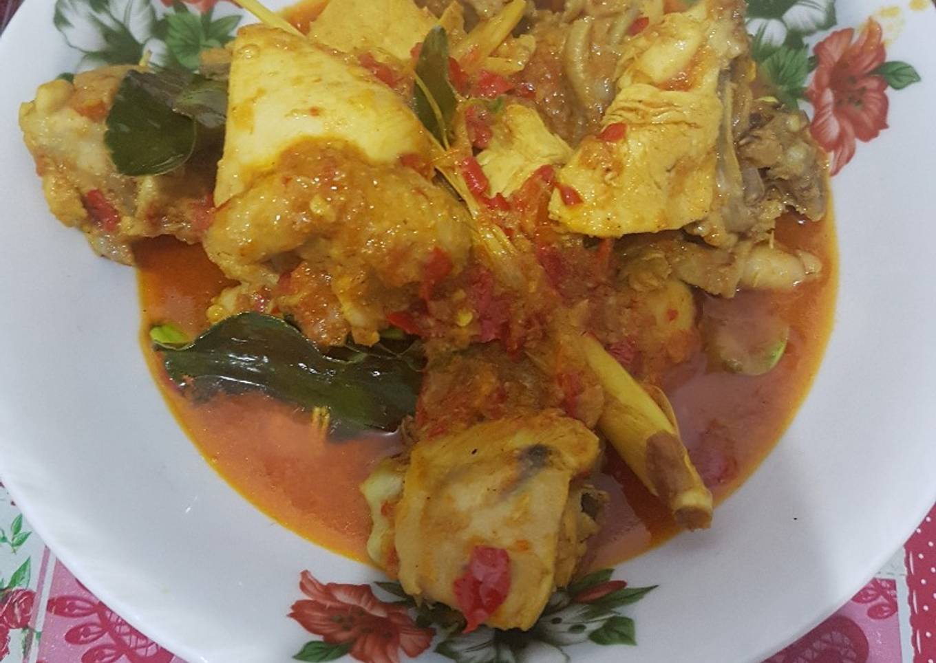 - Ketika sudah wangi masukan ayam yang sudah digoreng setengah matang dan beri air secukupnya