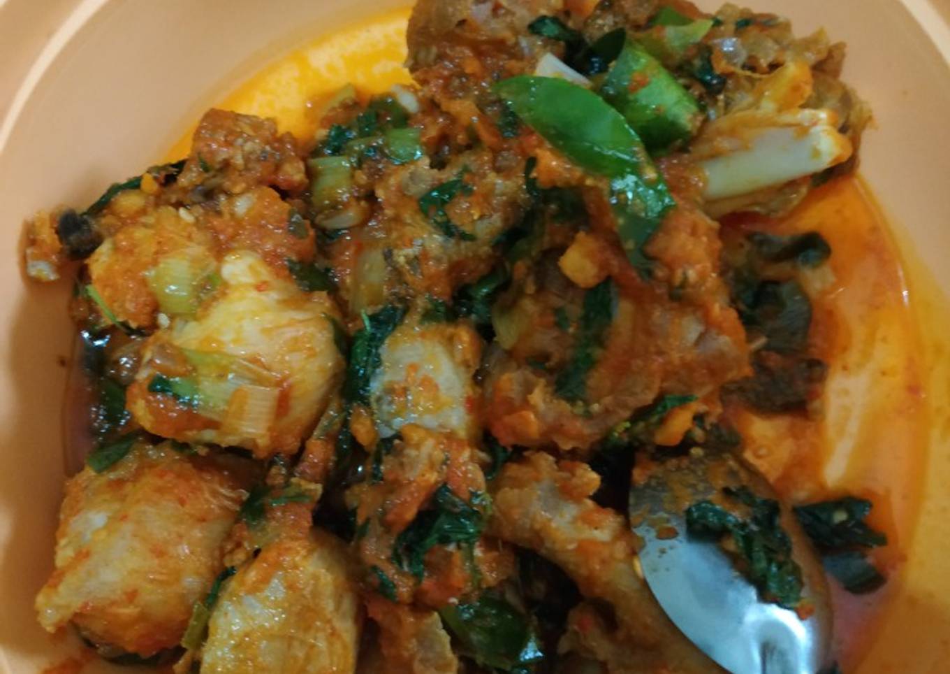 - Masukkan kemangi.daun bawang.koreksi rasa. Angkat.hidangkan