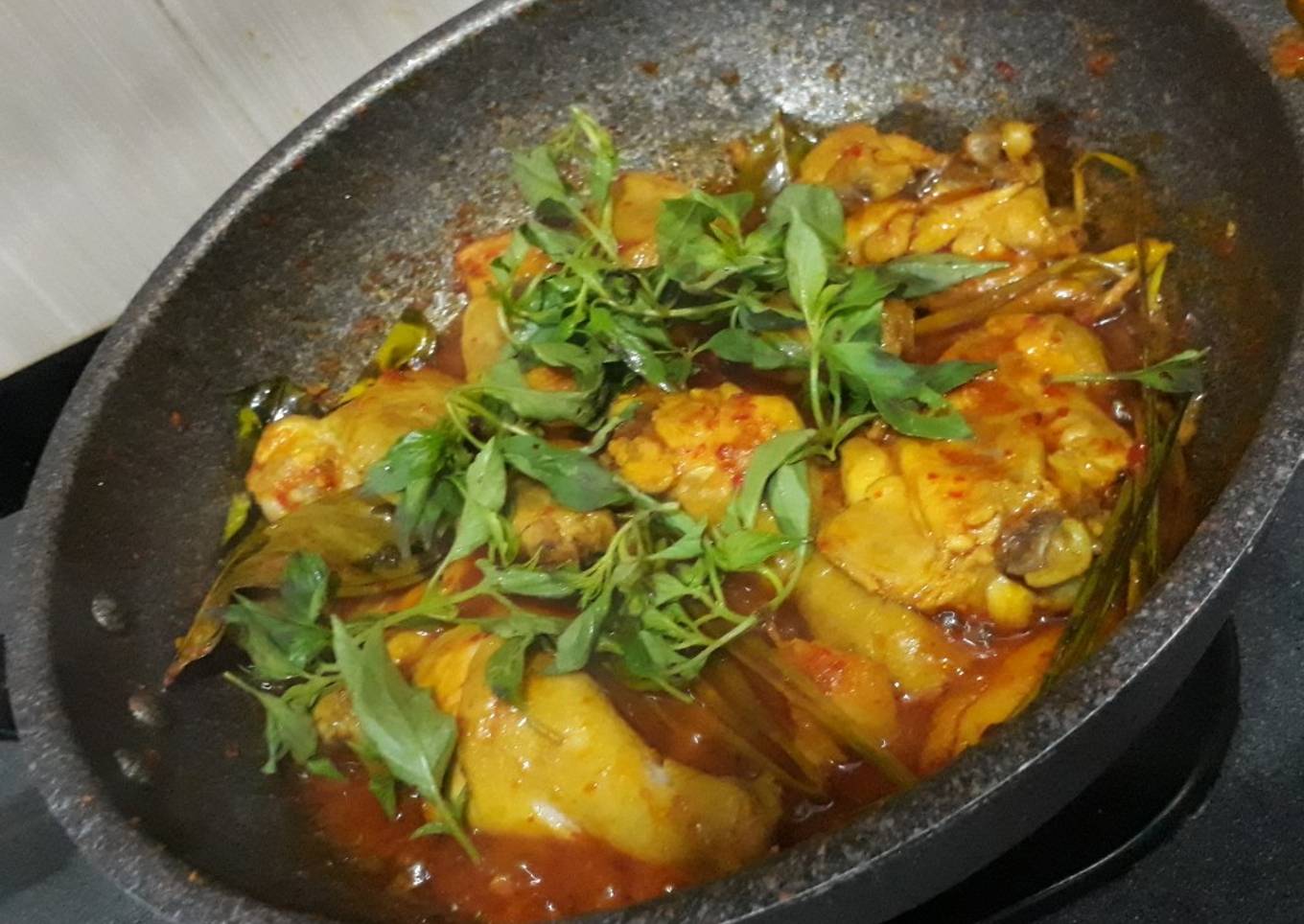 - Jika sudah setengah kering/sudah tidak berkuah, masukan daun kemangi, aduk sebentar kemudian matikan kompor... ayam rica siap disajikan!