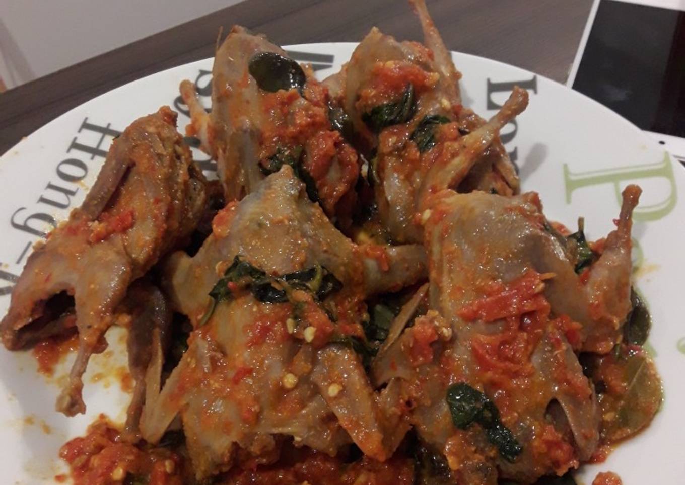 - Tumis bumbu halus dengan bumbu utuh, hingga wangi. Kemudian masukan burung dan kaldu yang sudah disisihkan. Masak dengan api kecil, hingga menyusut. Lalu beri garam dan gula test rasa. Ungkep lagi hingga air nya habis dan tinggal bumbunya saja. Kemudian masukan daun bawang dan kemangi.