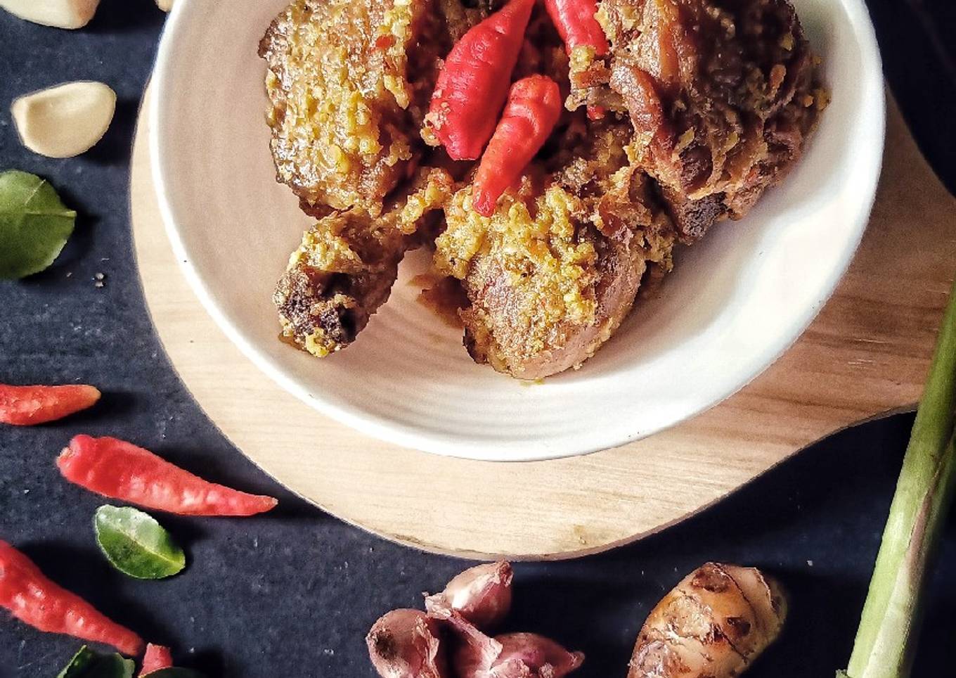 - Tumis bumbu halus sampai harum, masukan salam, lengkoas, sereh, daun jeruk, kaldu bubuk, kemudian masukan ayam yg sdh digoreng tadi, aduk sampai rata dan diamkan sampai bumbu meresap. Angkat dan siap dihidangkan